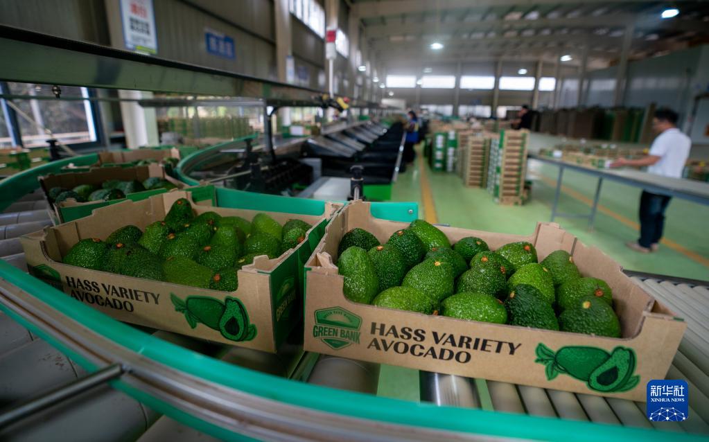 牛油果在云南省孟連縣牛油果分揀車間內完成分揀包裝(2022年11月17日攝)。