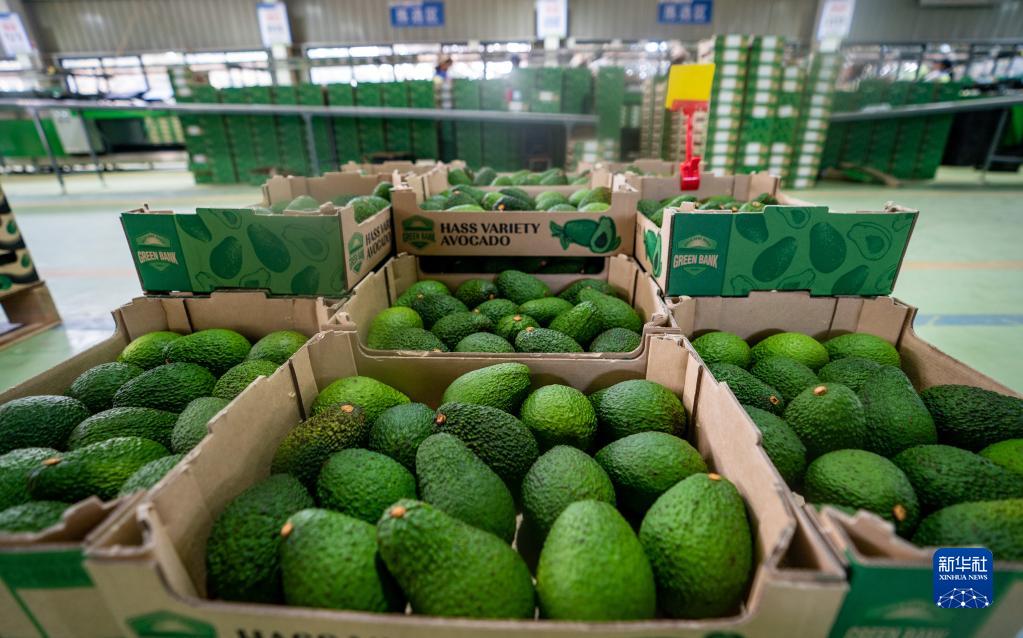 牛油果在云南省孟連縣牛油果分揀車間內完成分揀包裝(2022年11月17日攝)。