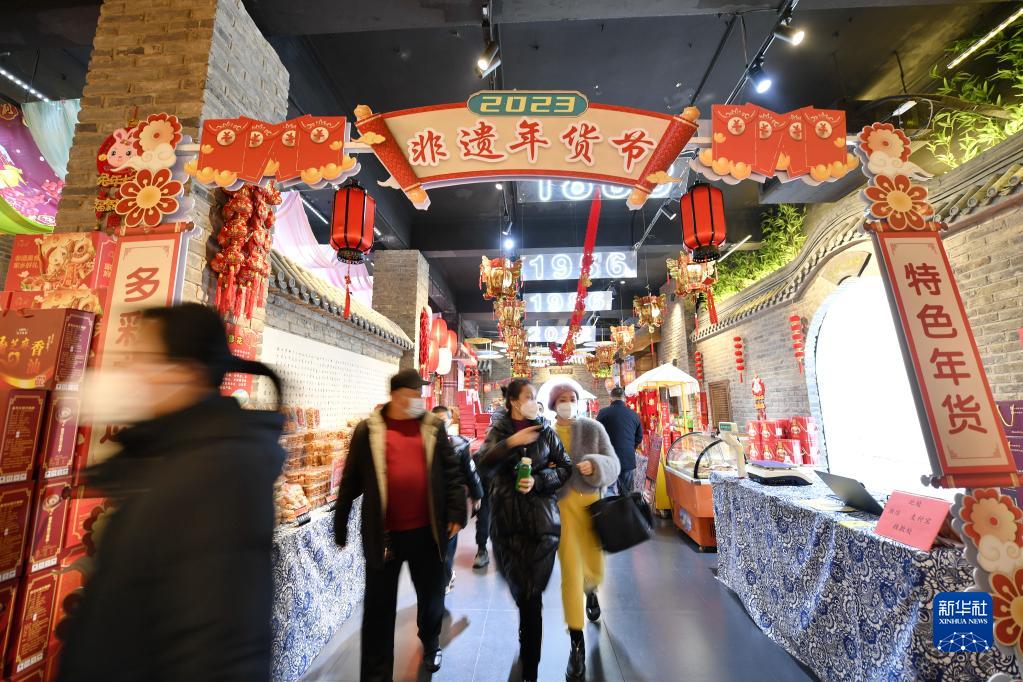 1月12日,顧客在河北省唐山市豐潤區2023“非遺”年貨節現場游覽。
