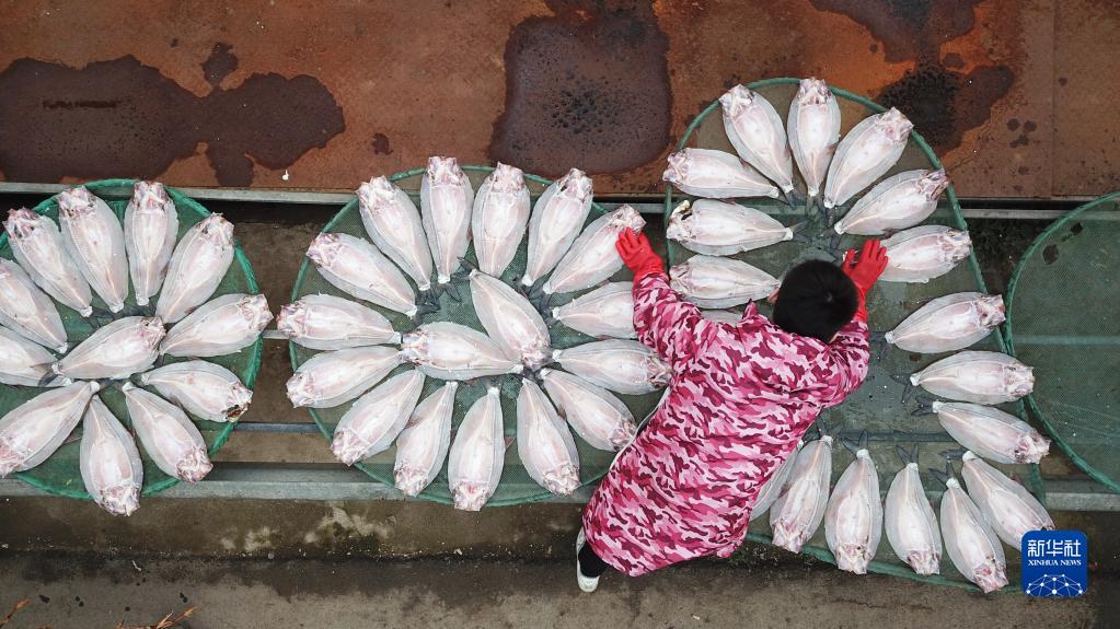 春節臨近,在湖南省岳陽市君山區錢糧湖鎮六門閘社區,當地上岸漁民將魚進行切割、晾曬、加工成魚干,準備供應節日市場?!傲T閘風干魚”是國家地理標志產品,部分漁民上岸后,從外湖捕魚轉為水產養殖,并將養殖魚進行風干售賣。為了幫助上岸漁民把風干魚推得更遠、銷得更多,君山區實施“百村千人”直播帶貨人才培養計劃,助推上岸漁民創業增收,助力鄉村振興。