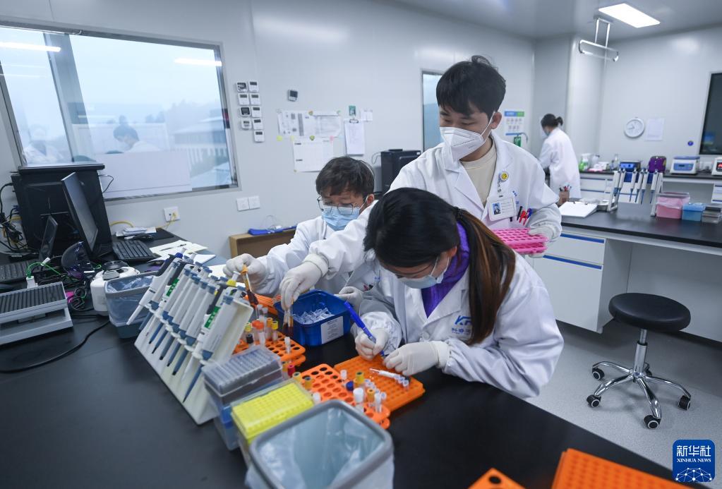 1月13日,在天目醫藥港醫藥產業孵化園的一家生物科技有限公司的實驗室里,工作人員在進行實驗。