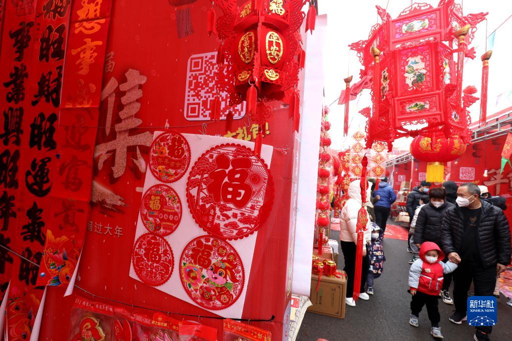 1月13日,游客在河北石家莊正定年貨大集上選購年貨。