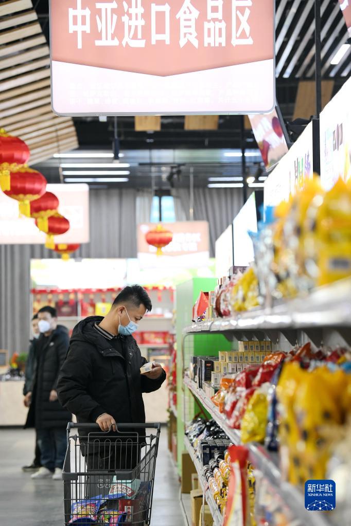 1月13日,在位于西安國際港務區的愛菊健康生活體驗館,消費者挑選中亞進口食品。