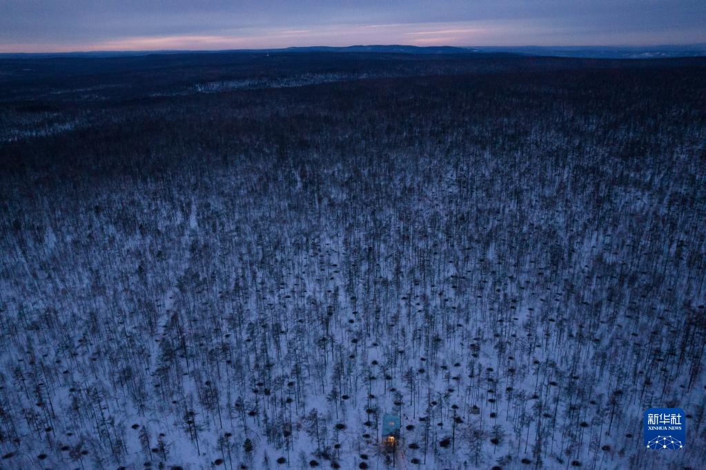 這是1月11日拍攝的漠河林場撫育作業點的臨時帳篷(無人機照片)。