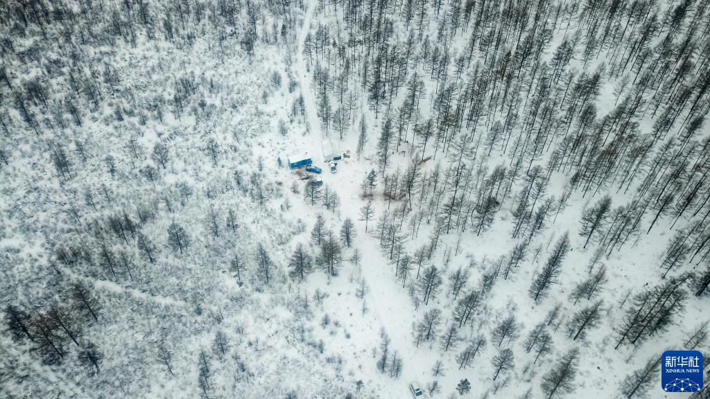 這是1月12日拍攝的覺樂在大興安嶺林區深處的臨時放牧點(無人機照片)。新華社記者 彭源 攝