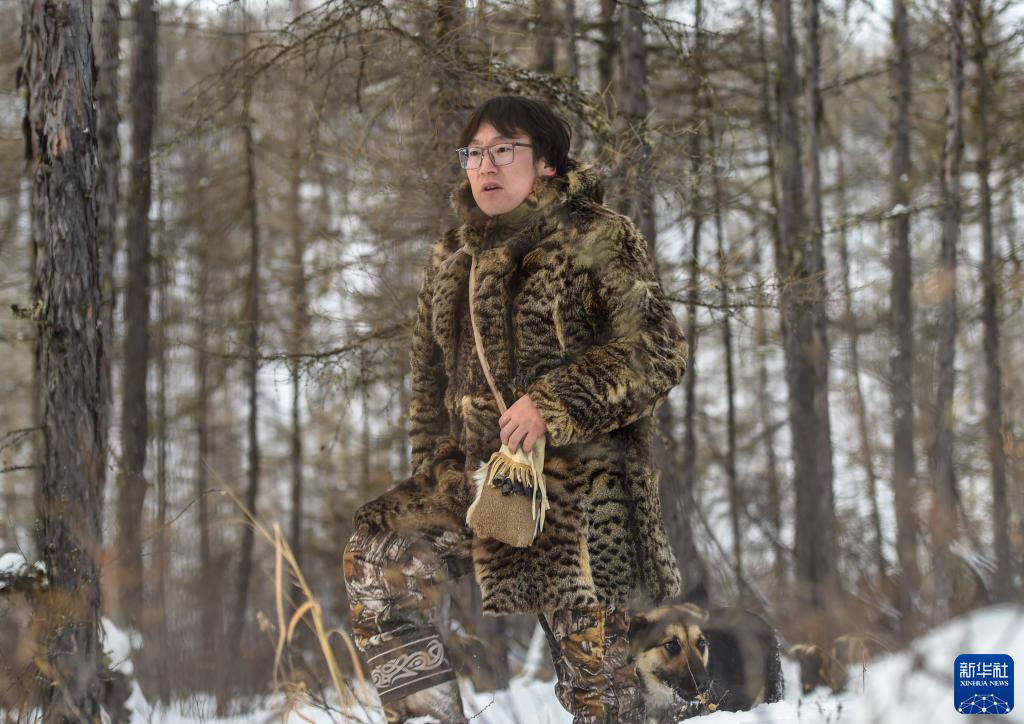 1月12日,覺樂在山林深處踩著厚厚的積雪去尋找自己的鹿群。新華社記者 彭源 攝