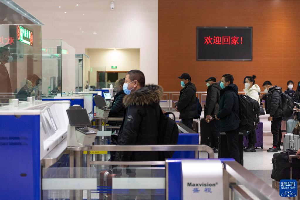 春節將至,百年口岸城市黑龍江省綏芬河市恢復公路口岸旅檢通關,旅客陸續入境,與許久不見的親友重逢。