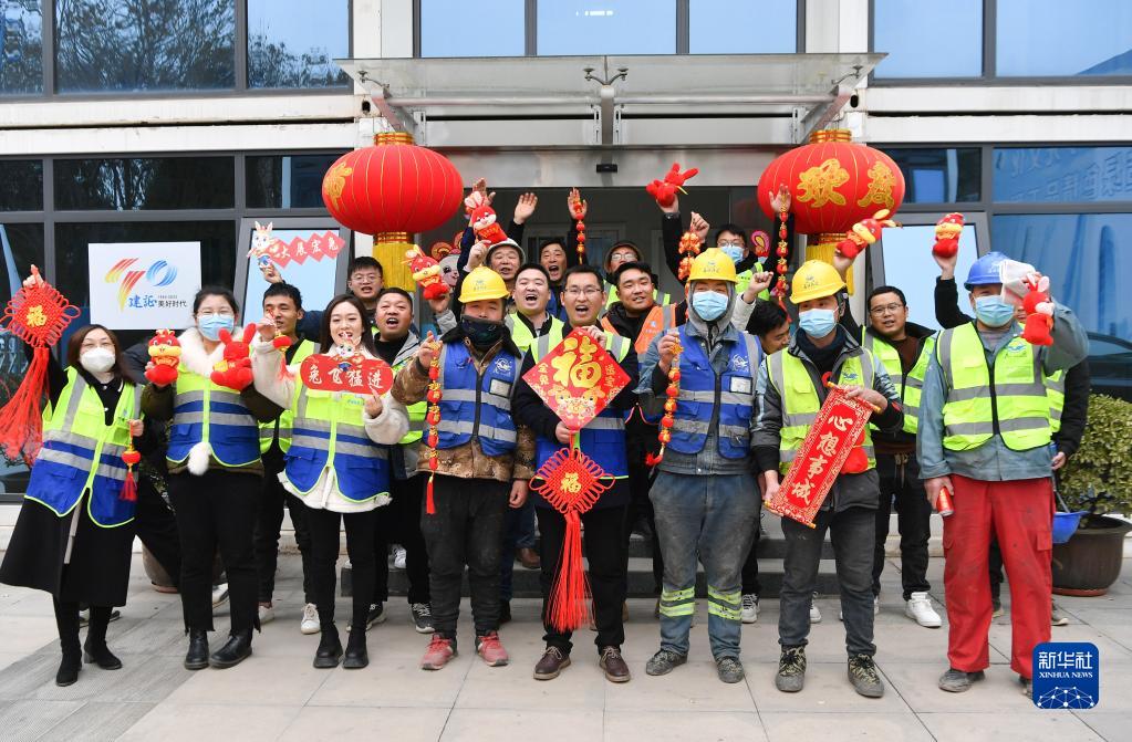 農歷小年來臨之際,陜西省西安市的建筑工地節日氣氛濃厚。建設者們貼福字、掛燈籠、寫春聯、包餃子,以多種形式迎接兔年春節的到來。