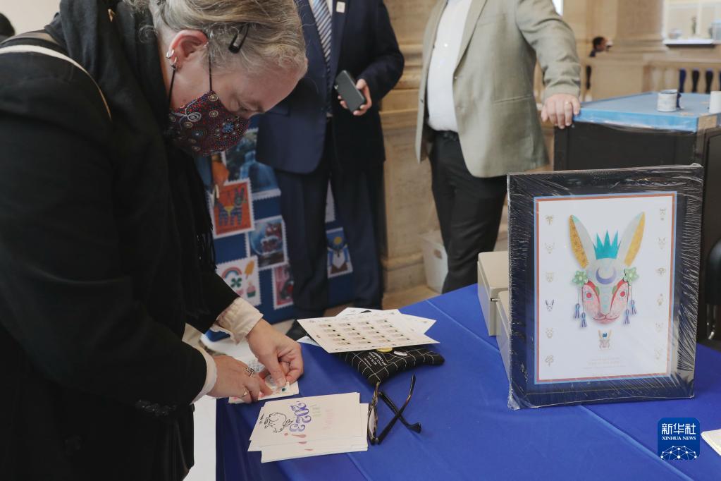 美國郵政總局12日在舊金山亞洲藝術博物館舉行中國農歷兔年生肖紀念郵票發行儀式,慶祝即將到來的中國農歷新年。