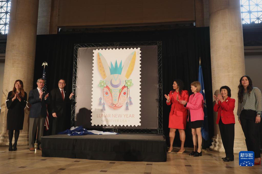 1月12日,美國郵政總局在舊金山亞洲藝術博物館舉行中國農歷兔年生肖紀念郵票發行儀式。