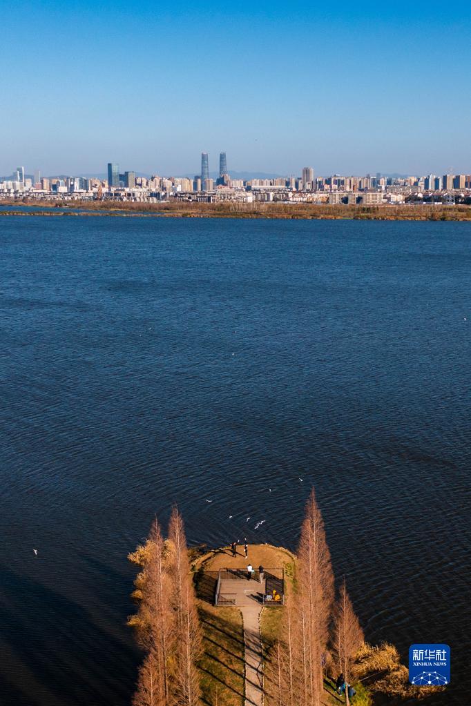 1月12日拍攝的昆明滇池一景(無人機照片)。