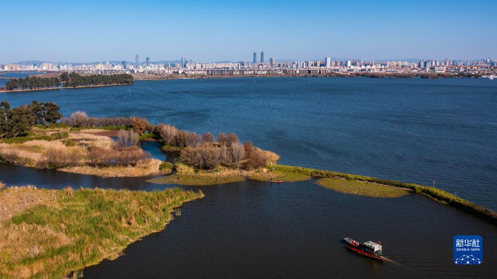 1月12日拍攝的昆明滇池一景(無人機照片)。