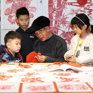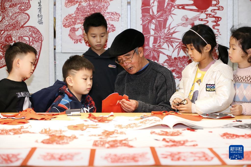 當日,“手藝迎新春 年味有傳承”主題創作體驗活動在山東省青島市即墨區新時代文明實踐中心舉行,來自當地的剪紙、柳編、烙畫等傳統技藝手藝人與孩子們共同了解春節習俗,學習手工技藝,喜迎新春到來。新華社發(梁孝鵬 攝)