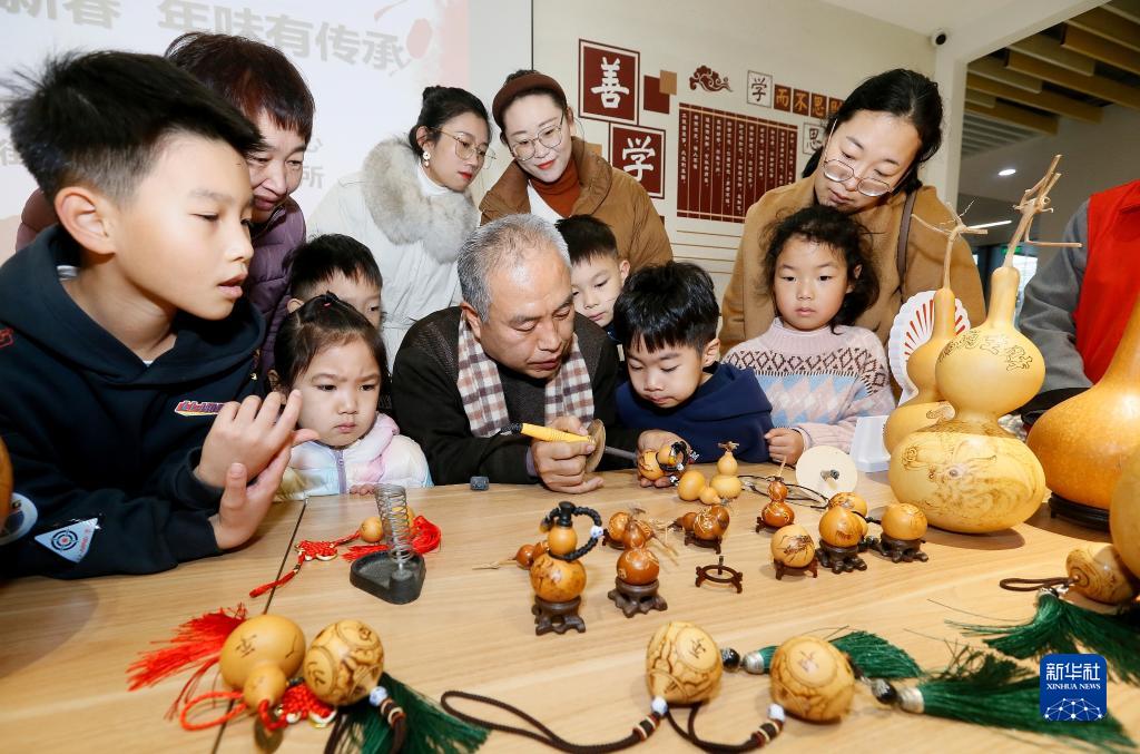 當日,“手藝迎新春 年味有傳承”主題創作體驗活動在山東省青島市即墨區新時代文明實踐中心舉行,來自當地的剪紙、柳編、烙畫等傳統技藝手藝人與孩子們共同了解春節習俗,學習手工技藝,喜迎新春到來。新華社發(梁孝鵬 攝)