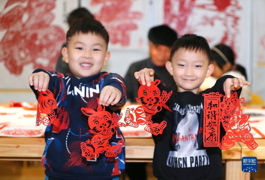 當日,“手藝迎新春 年味有傳承”主題創作體驗活動在山東省青島市即墨區新時代文明實踐中心舉行,來自當地的剪紙、柳編、烙畫等傳統技藝手藝人與孩子們共同了解春節習俗,學習手工技藝,喜迎新春到來。新華社發(梁孝鵬 攝)