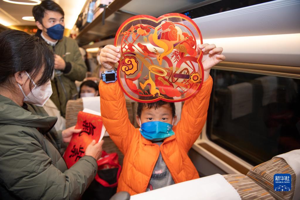 當日,G1008次愛心專列搭載著500多名長期在深圳工作的文明實踐志愿者從深圳北站駛往武漢。G1008次列車是深圳鐵路部門今年春運開出的第6趟愛心專列,暖心助力深圳地區的文明實踐志愿者和城市奮斗者及家人順利回家過年。新華社記者 毛思倩 攝
