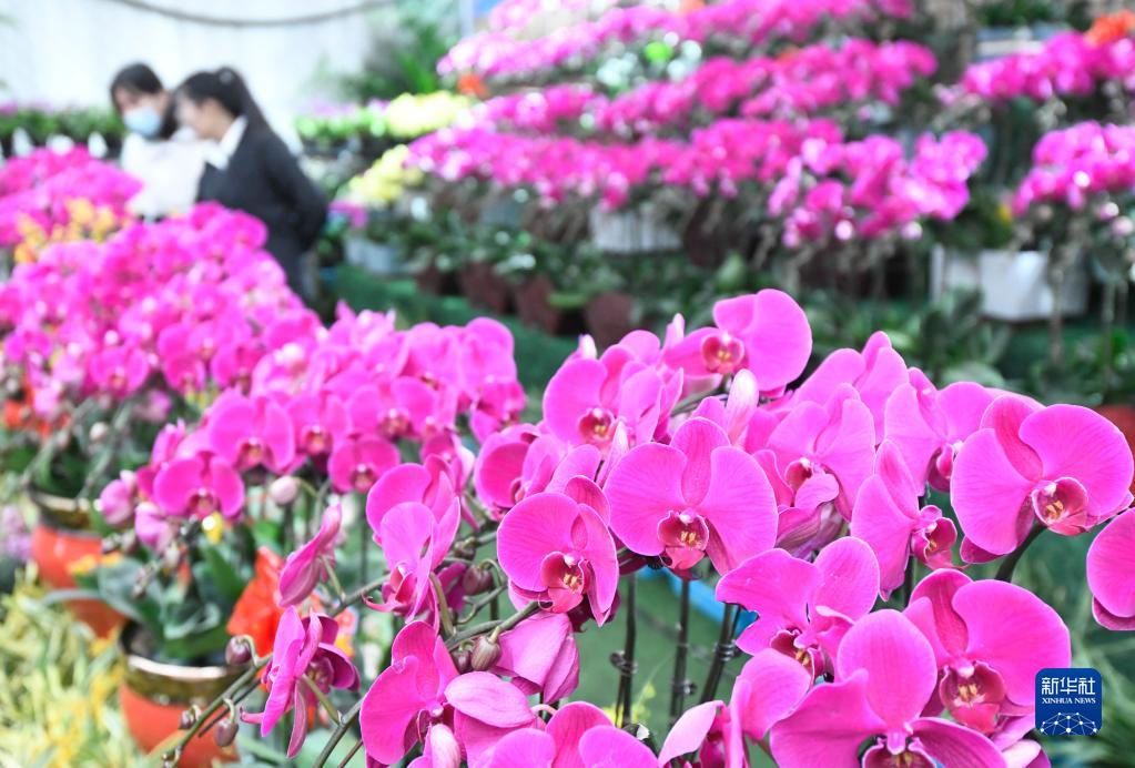春節將至,各地花卉市場呈現出一派熱鬧景象,人們紛紛前往花卉銷售市場選購,節日氣氛漸濃。新華社發(劉滿倉 攝)