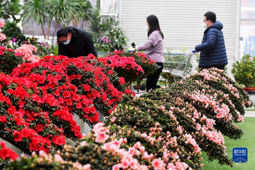 春節將至,各地花卉市場呈現出一派熱鬧景象,人們紛紛前往花卉銷售市場選購,節日氣氛漸濃。新華社發(俞方平 攝)