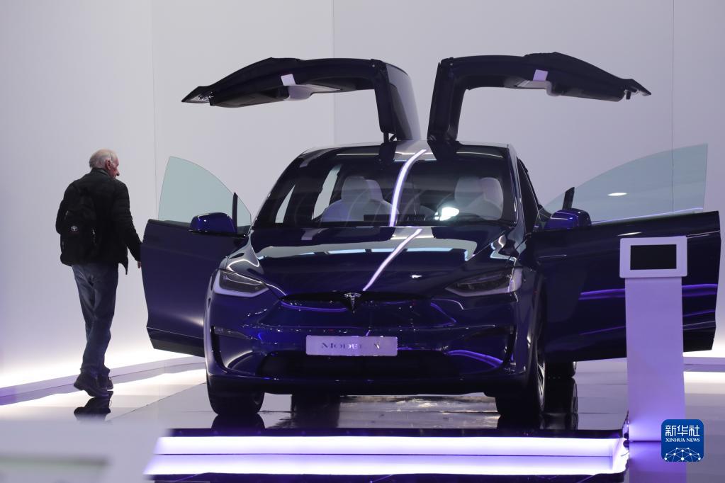 1月13日,一名男子在比利時布魯塞爾舉辦的第100屆布魯塞爾車展媒體預展上參觀特斯拉Model X汽車。