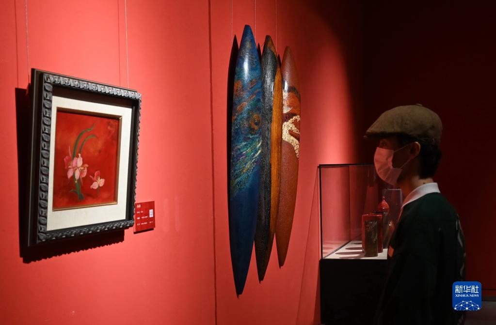 當日,“漆緣——臺灣現當代漆藝術作品展”在福建省美術館展出。本次展覽分為“傳承與融合”“交流與演變”“材料與美學”三個部分,共展出近百件作品。新華社記者 林善傳 攝