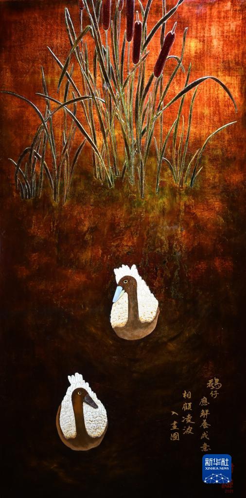 1月13日在福建省美術館拍攝的漆藝作品。