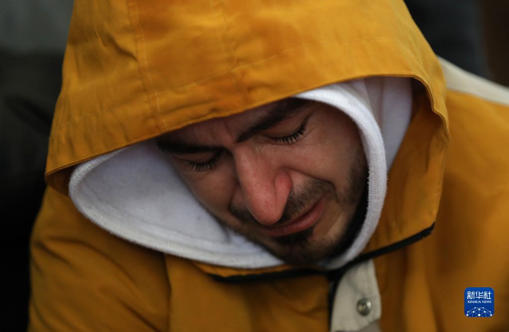 1月13日,在約旦河西岸北部城市杰寧附近的卡巴提亞村,一名死者親屬在葬禮上哭泣。