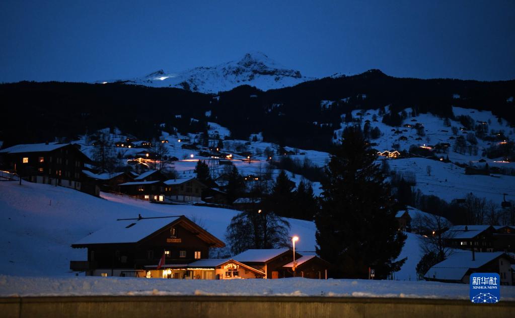 這是1月12日在瑞士少女峰山腳下拍攝的夜景。