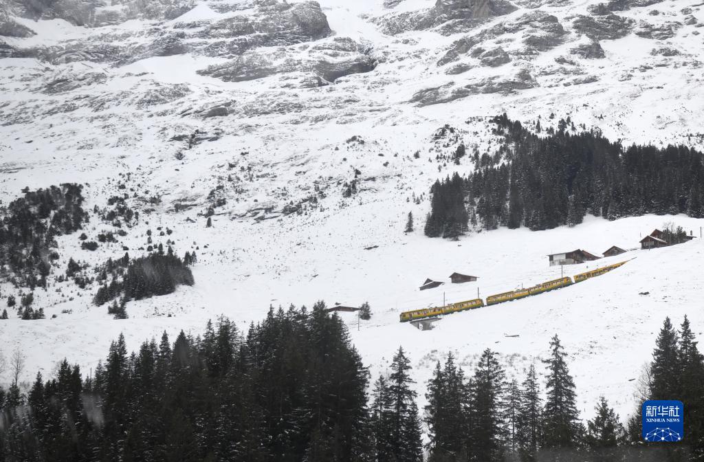 1月12日,一輛運送游客的列車在瑞士少女峰地區的山間行駛。