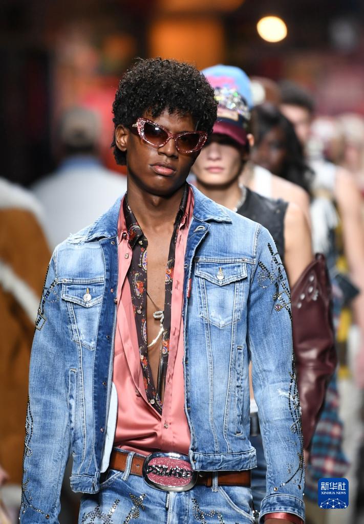 1月13日,模特在意大利米蘭男裝周上展示Dsquared2品牌時裝。