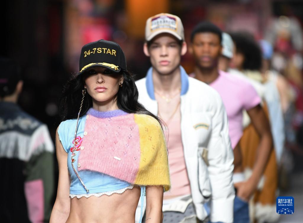 1月13日,模特在意大利米蘭男裝周上展示Dsquared2品牌時裝。