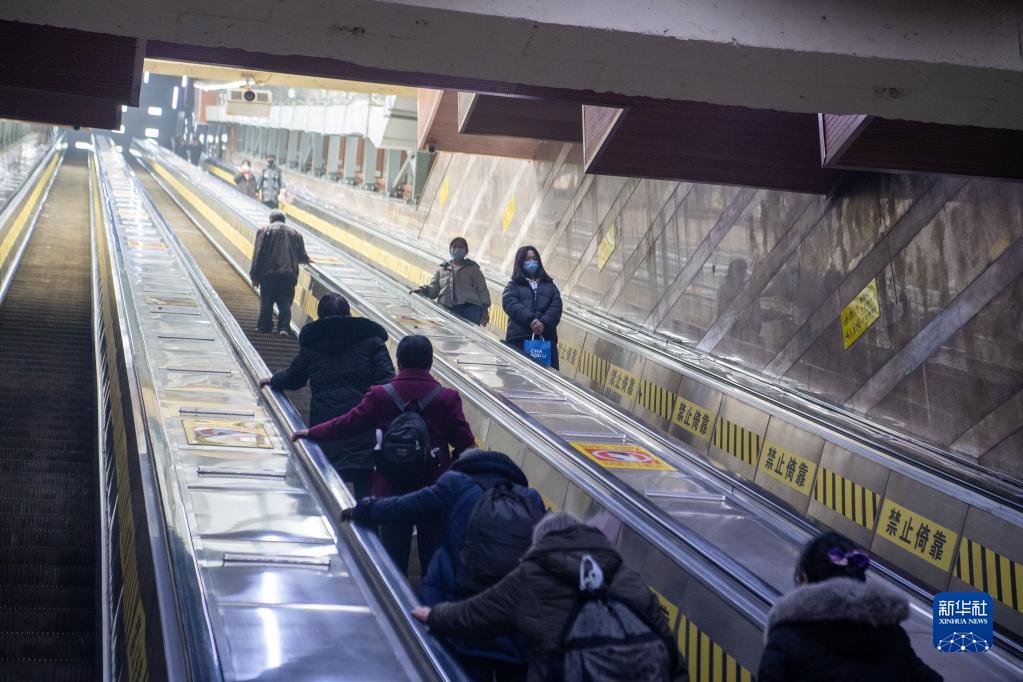 1月13日,在位于重慶市渝中區的皇冠扶梯景點,游客在有序搭乘扶梯。