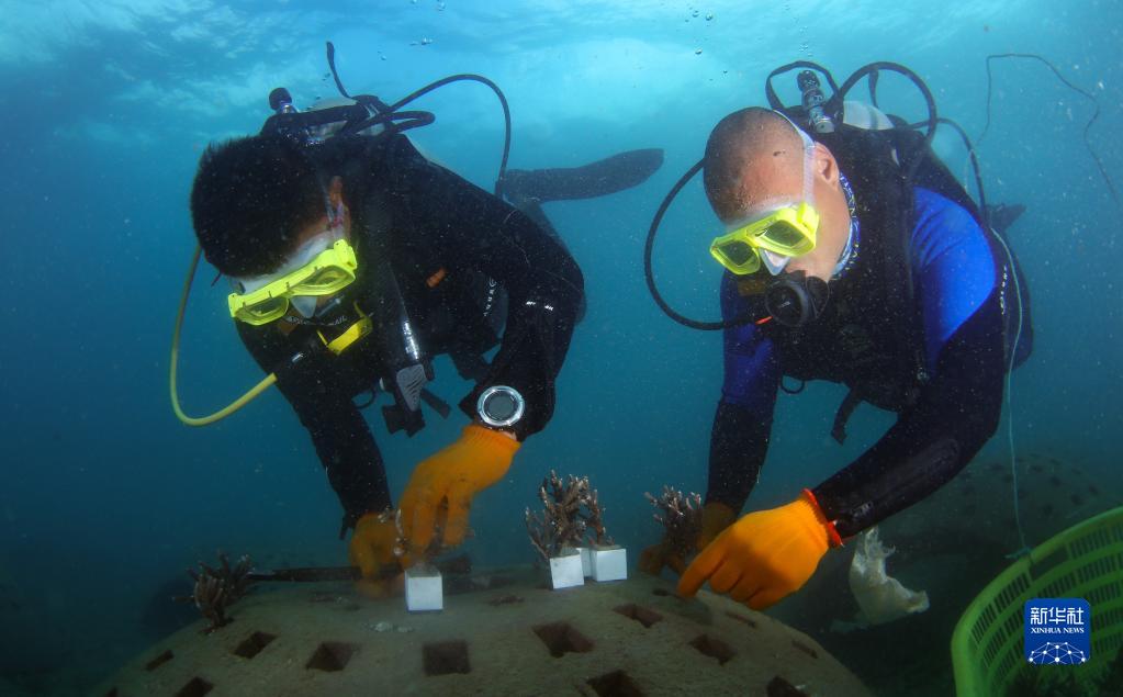 在海南省三亞市亞龍灣相關海域,由海南三亞珊瑚礁國家級自然保護區組織,并由三亞珊瑚礁生態研究所負責實施的珊瑚礁生態修復項目近期完成修復工作。據了解,該項目采用投放人工生態礁及移植珊瑚種苗的方式完成生態修復,預期珊瑚種苗半年存活率80%以上、一年存活率達70%以上。