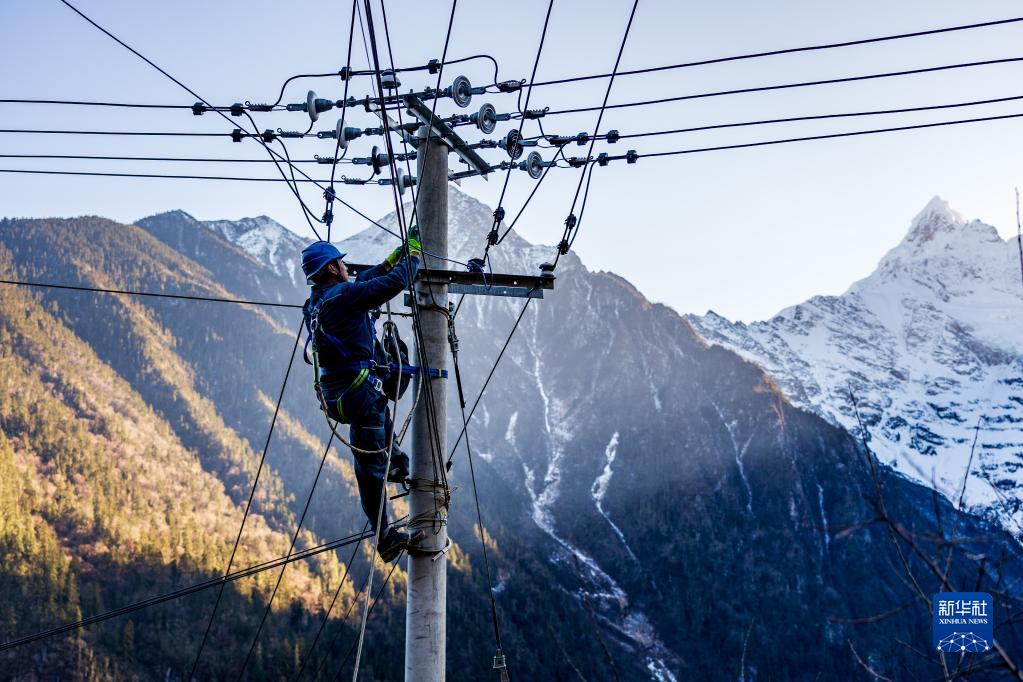 1月9日,旺登在雨崩村檢修電路。