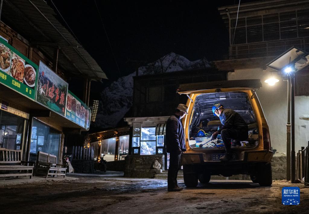 1月8日,旺登在幫助雨崩村村民檢修電路前整理材料。