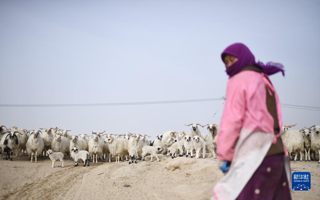 1月13日,在青海湖湖東種羊場,一名牧工將羊群趕往飲水處。