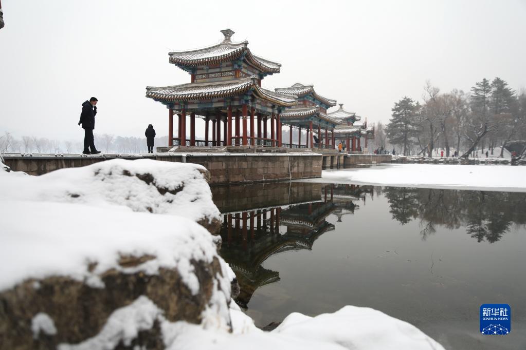 1月13日,游客在河北省承德市避暑山莊景區賞雪游玩。