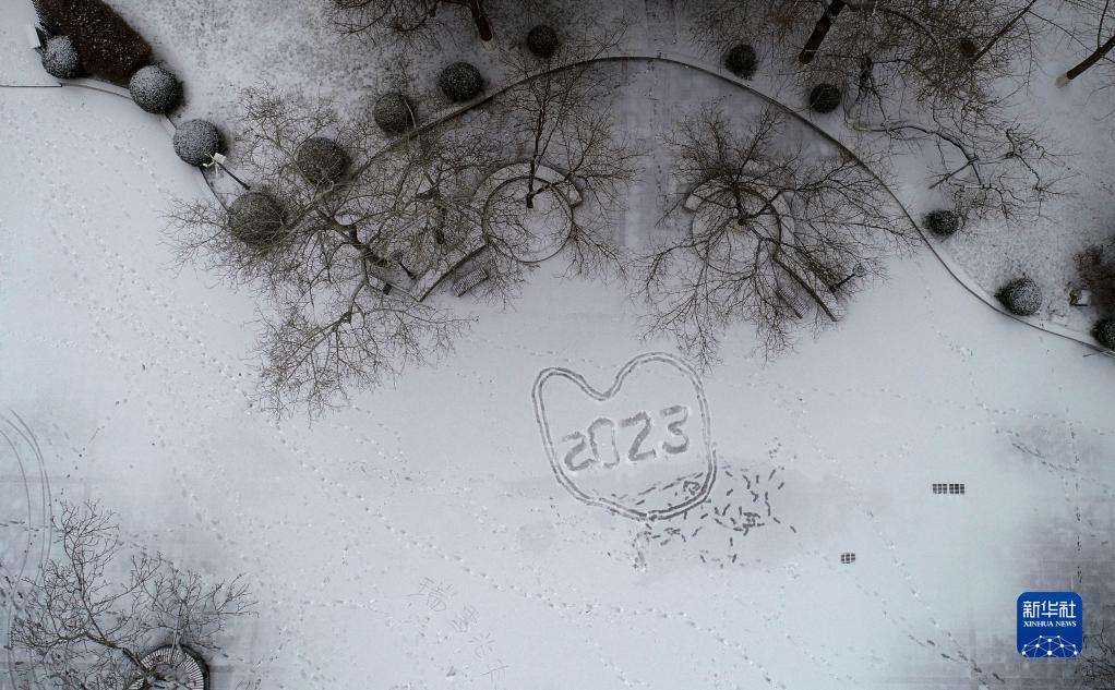 1月14日拍攝的河北省石家莊市長安公園雪景(無人機照片)。