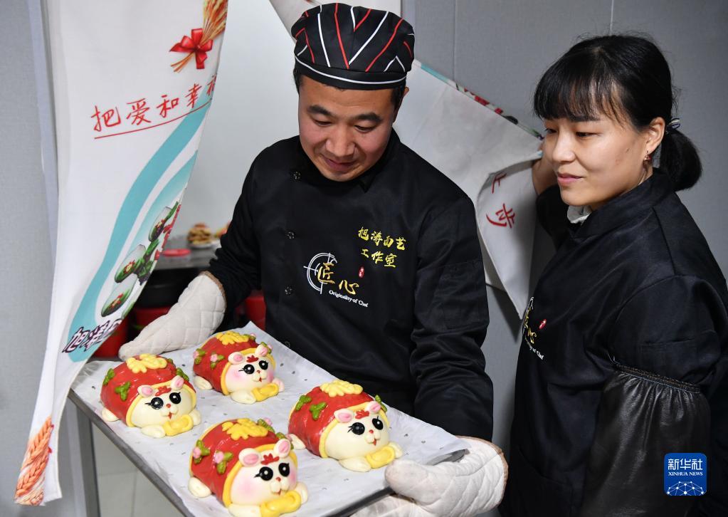 為迎接兔年,河南省洛陽市的一家面藝工作室以兔為題,創作出外形乖萌可愛的兔型花饃,為消費者提供更多“年味”之選。