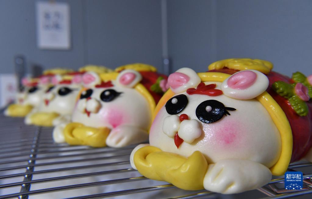 為迎接兔年,河南省洛陽市的一家面藝工作室以兔為題,創作出外形乖萌可愛的兔型花饃,為消費者提供更多“年味”之選。