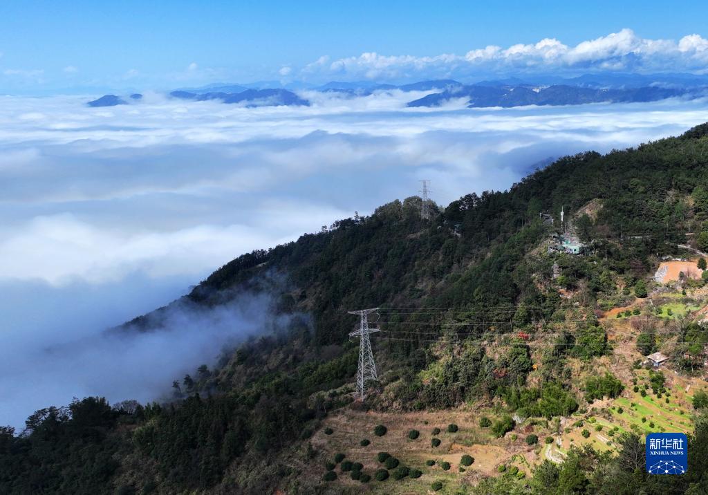 1月14日在福州市晉安區鼓嶺拍攝的平流霧景觀(無人機照片)。