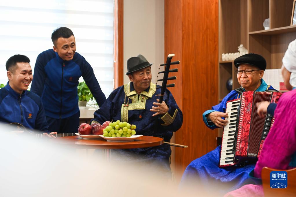 1月8日,西烏珠穆沁旗消防救援大隊消防員和當地群眾排練文藝節目,迎接春節的到來。