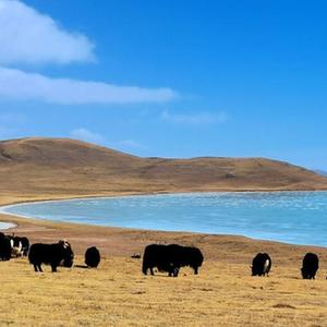 在位于青海省果洛藏族自治州瑪多縣的三江源國家公園黃河源園區內拍攝的扎陵湖風光(2022年3月12日攝)。
