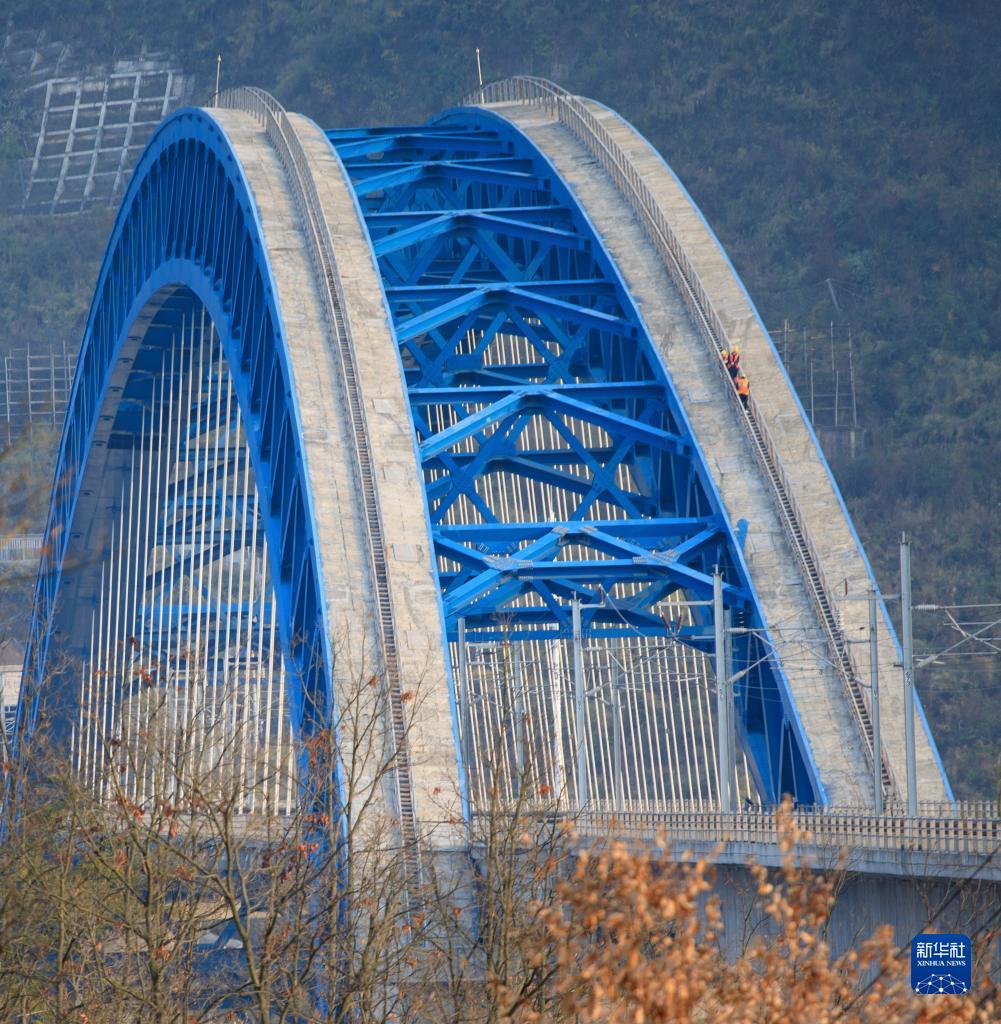 成貴高鐵鴨池河特大橋橫跨貴州省黔西市境內的鴨池河,在地勢險峻的峽谷間,每天約有100多組春運動車穿行經過。在最高處距離河面約277米的大橋上,鐵路職工堅守崗位,嚴格巡檢,對大橋的鋼結構、供電設備、橋梁支座、外包混凝土等進行細致檢查,根據列車運行情況調整軌道線路的幾何尺寸、進行鋼軌探傷等作業,全力保障春運期間動車組安全通過。