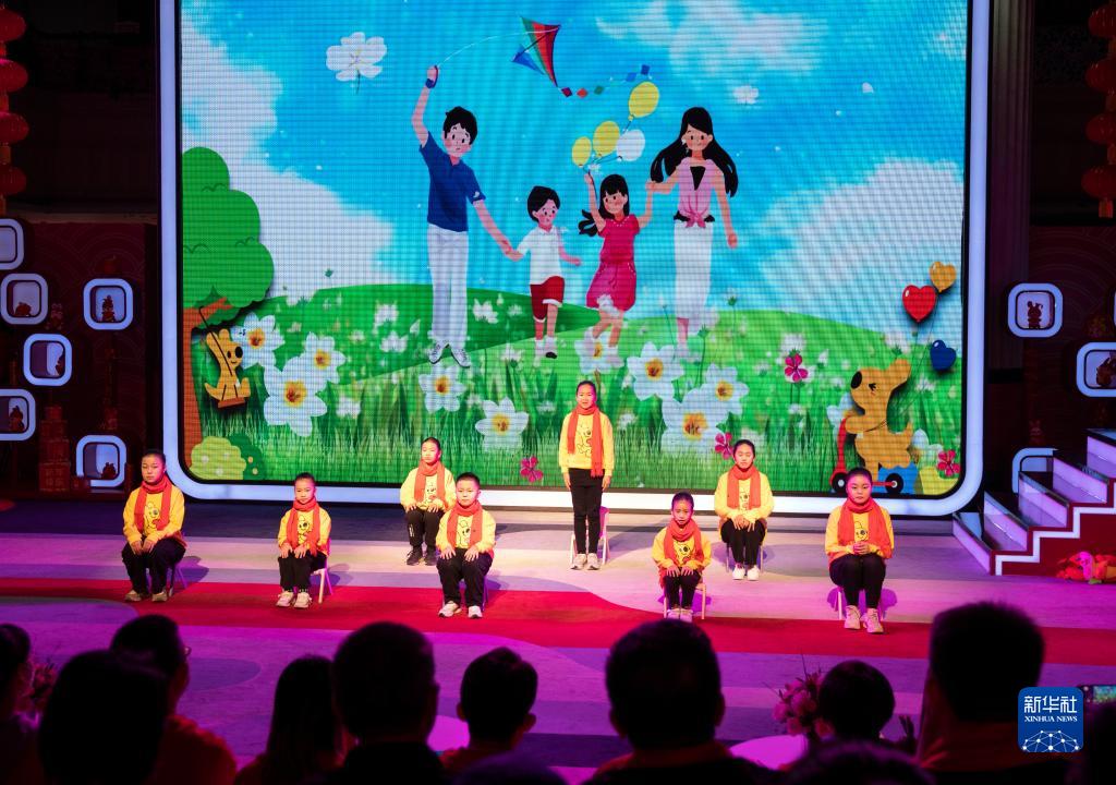 1月13日,來自美團外賣的“袋鼠寶貝之家·協作者童緣”的孩子們表演詩朗誦《騎手寶貝們送給爸爸媽媽的小詩》。