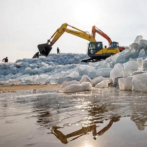 時值三九,河北省唐山市豐南區黑沿子漁港附近的農民忙著切割冰封的河面獲取冰塊、儲存。據了解,每年寒冬時節,河北省唐山、秦皇島等沿海地區的農民都會在冰封的河面上切割冰塊、儲存,用于水產、蔬菜保鮮等行業。