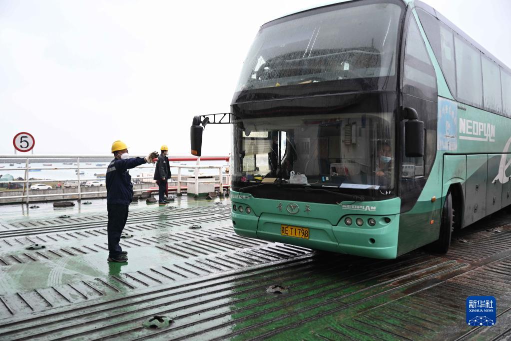 在粵海鐵路輪渡??看a頭時,劉昱指揮車輛駛離甲板(1月8日攝)。