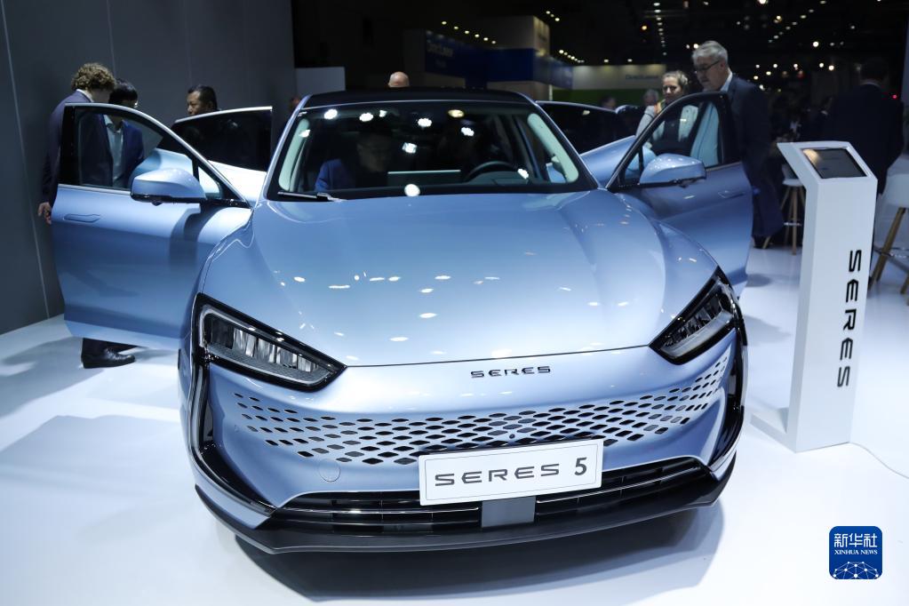 1月13日,人們在比利時布魯塞爾車展媒體開放日上參觀賽力斯5電動汽車。