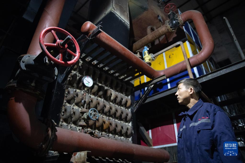 1月12日,司爐工丁俊旺在漠河華美供熱有限公司鍋爐房巡檢設備。