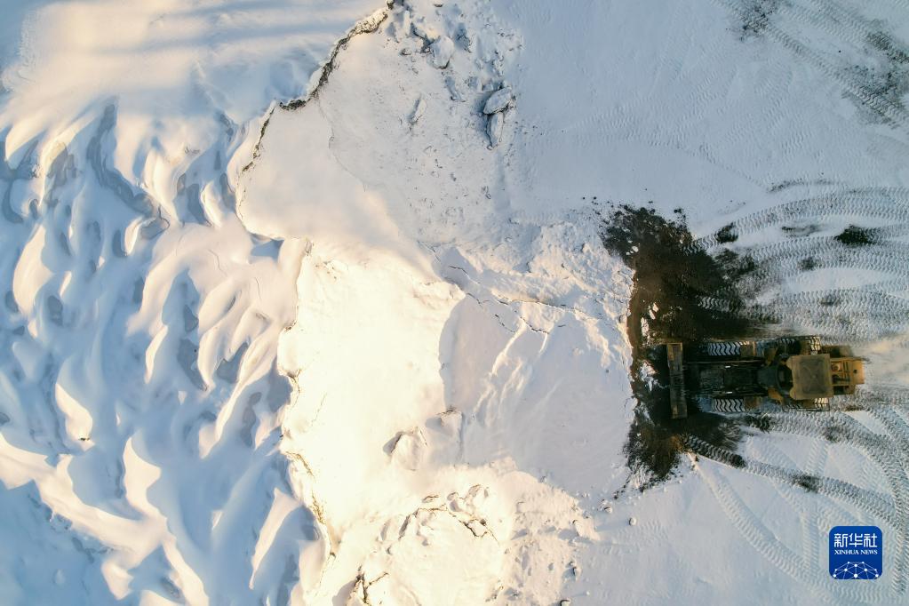 這是1月13日拍攝的漠河華美供熱有限公司的儲煤場(無人機照片)。