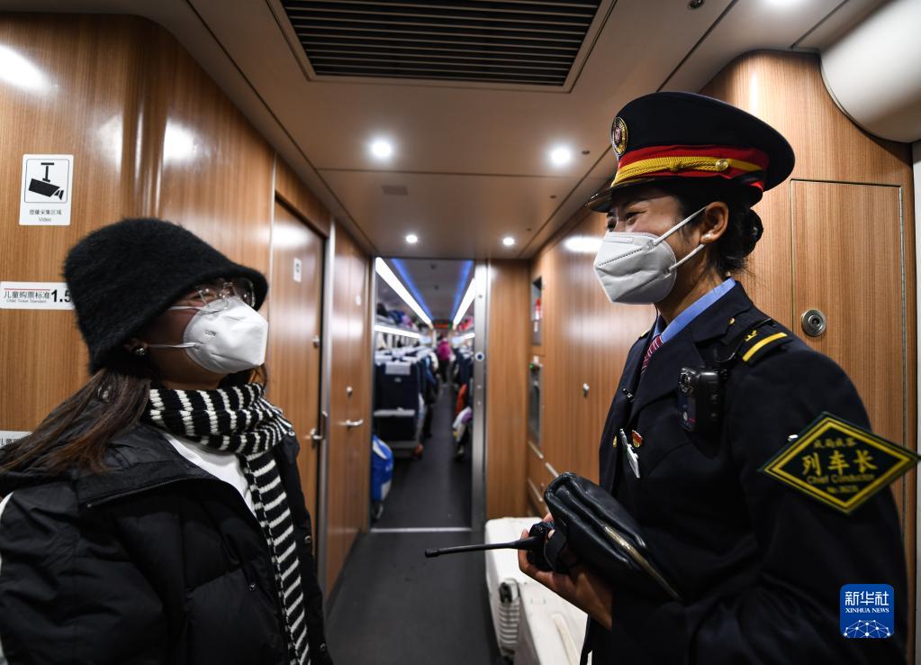 1月11日,在C43次列車上,阿依布卡(右)遇到表妹同乘。
